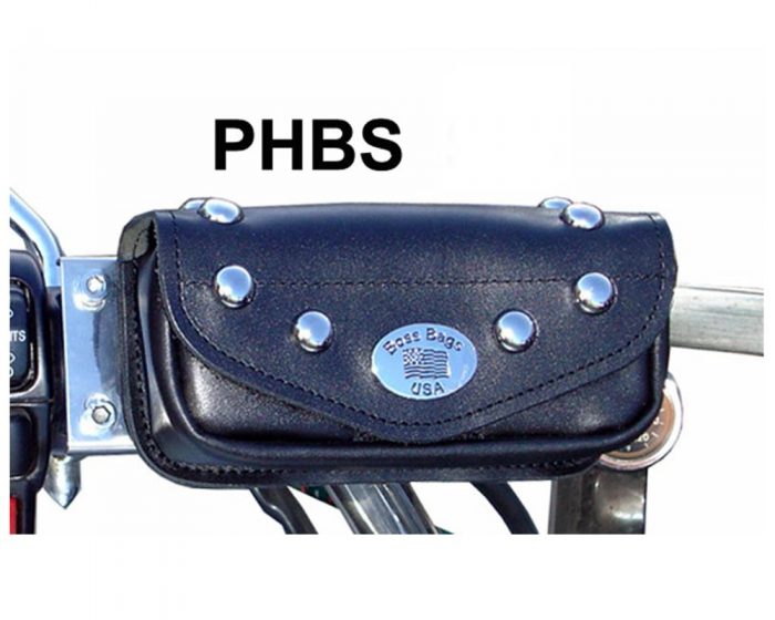 Studded Leather handle bar pouch has attractive polished stainless steel mount. Attaches using the 2 screw mounts for controls. Velcro closure on the lid. Great for chap stick, sunglasses, etc. 6″ wide, 3 ” tall, 2″ thick. Fits left or right.